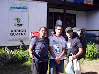 Meu amigo de aventuras e perrengues Mário e eu saímos da rodoviária Novo Rio as 06:00h e chegamos à entrada do parque as 07:20h. Após todos os procedimentos para entrada no parque (pagamos R$ 40,00 cada para permanência por três dias com acampamento), chamamos um táxi, pois a subida até a barragem aonde iniciamos a trilha é de mais ou menos 4 km e não vale a pena gastar energia no asfalto !! Chegando a Barragem finalizamos os detalhes para começar a trilha: água, banheiro, acertar a mochila, regular o bastão e etc.