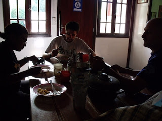 Trilha também é trabalho. Mario e eu ajudamos a carregar tudo que foi entregue. E depois fomos presenteados com um almoço show – adoro macarrão com molho e almôndegas !!