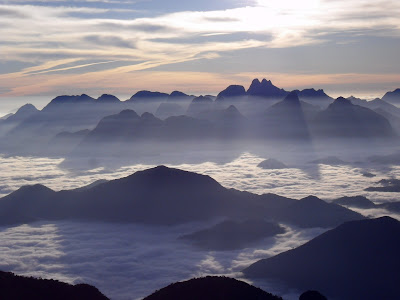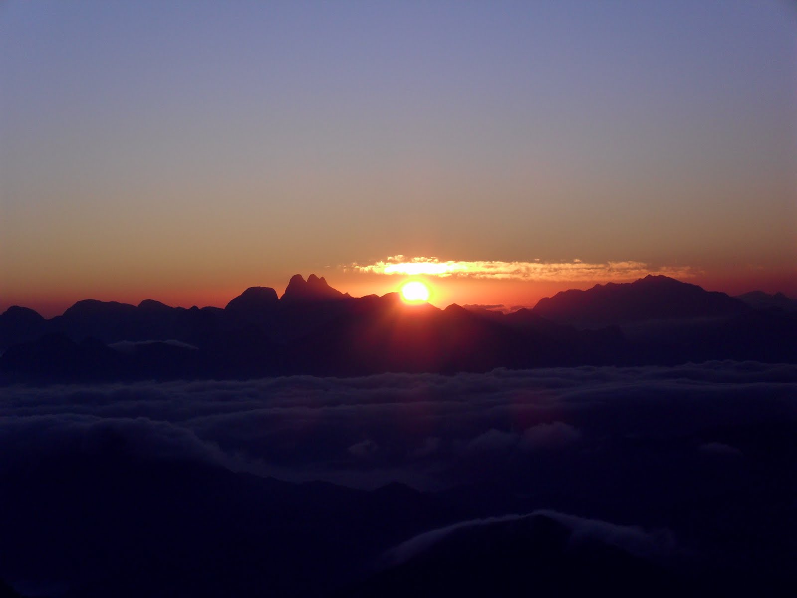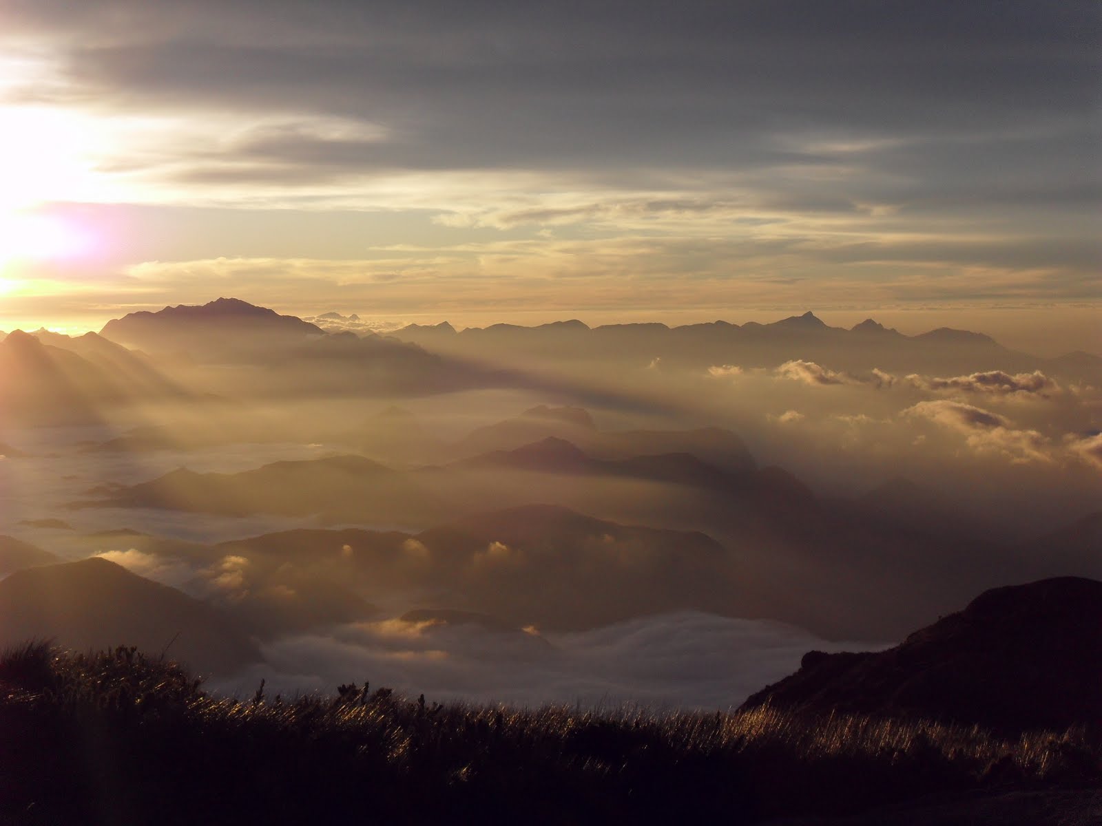 Chegamos na sexta e não tinha mais nenhum “trilheiro” no abrigo. Meu joelho e fôlego não me deixaram assistir o pôr do sol na Pedra do Sino, mas da onde eu estava o visual já era assim: