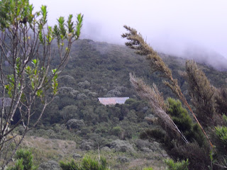 A primeira visão da Pedra do Sino, mesmo incoberta, impressiona. Mas a visão do telhado do Abrigo 4 é que nos deixa mais feliz, pois vendo ele significa de chegamos. Depois de 6 horas de trilha nós chegamos.